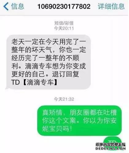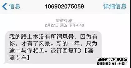 最后,還是滴滴,這條短信有價值的內容其實只是告訴用戶怎么退訂,這是逼用戶退訂的節奏?。?/p>