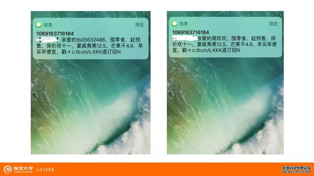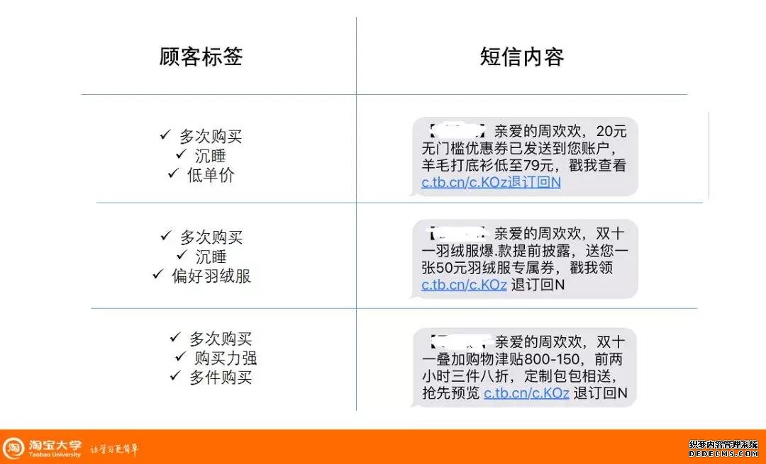 總之我們要根據消費者不同的購物習慣對消費者進行標簽化,然后通過短信內容推送他們感興趣的活動,提升他們的關注,從而增加點擊率。