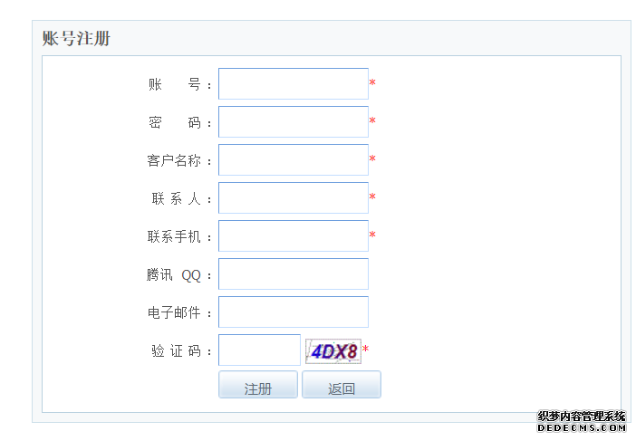 二、點擊免費注冊后會跳轉(zhuǎn)到賬戶注冊頁面,如下圖所示,輸入自編的短信賬號(建議是方便自己記憶的手機(jī)號、公司中英文簡稱、拼音)、方便記憶的密碼、公司名稱、聯(lián)系人、驗證碼,即可完成注冊。